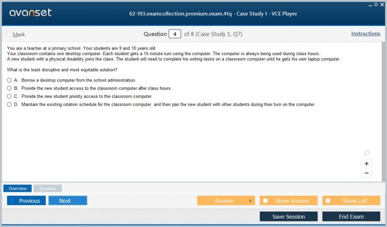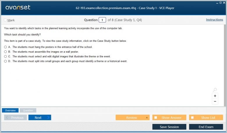 Microsoft 62-193 (Technology Literacy for Educators) exam dumps vce, practice test questions, study guide & video training course to study and pass quickly and easily. Microsoft 62-193 Technology Literacy for Educators exam dumps & practice test questions and answers. You need avanset vce exam simulator in order to study the Microsoft MCE 62-193 certification exam dumps & Microsoft MCE 62-193 practice test questions in vce format.
