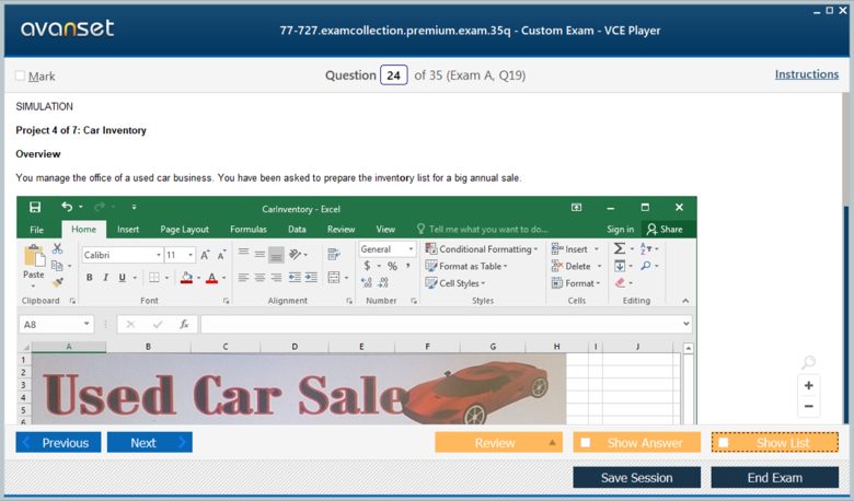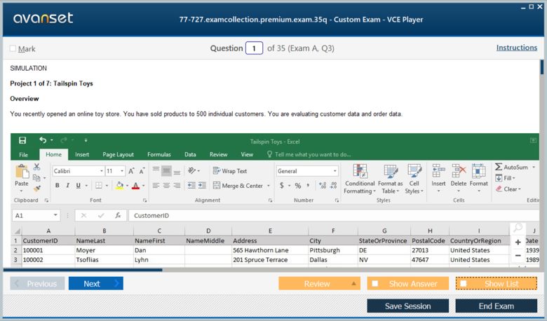 Microsoft 77-727 (Excel 2016: Core Data Analysis, Manipulation, and Presentation) exam dumps vce, practice test questions, study guide & video training course to study and pass quickly and easily. Microsoft 77-727 Excel 2016: Core Data Analysis, Manipulation, and Presentation exam dumps & practice test questions and answers. You need avanset vce exam simulator in order to study the Microsoft Excel 77-727 certification exam dumps & Microsoft Excel 77-727 practice test questions in vce format.