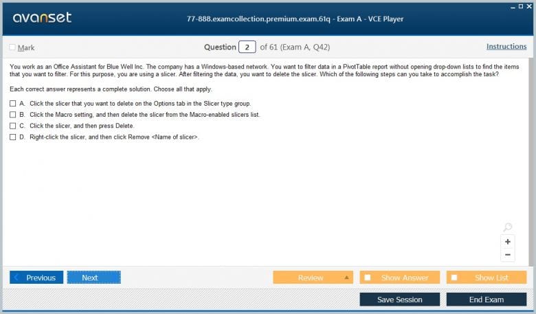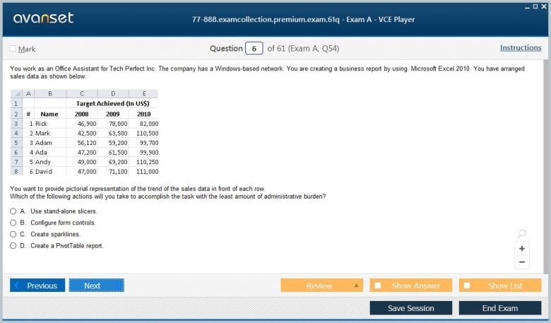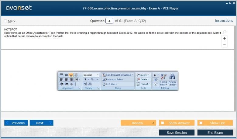 Microsoft 77-888 (Excel 2010 Expert) exam dumps vce, practice test questions, study guide & video training course to study and pass quickly and easily. Microsoft 77-888 Excel 2010 Expert exam dumps & practice test questions and answers. You need avanset vce exam simulator in order to study the Microsoft Excel Expert 77-888 certification exam dumps & Microsoft Excel Expert 77-888 practice test questions in vce format.