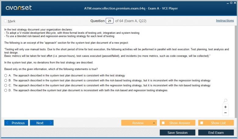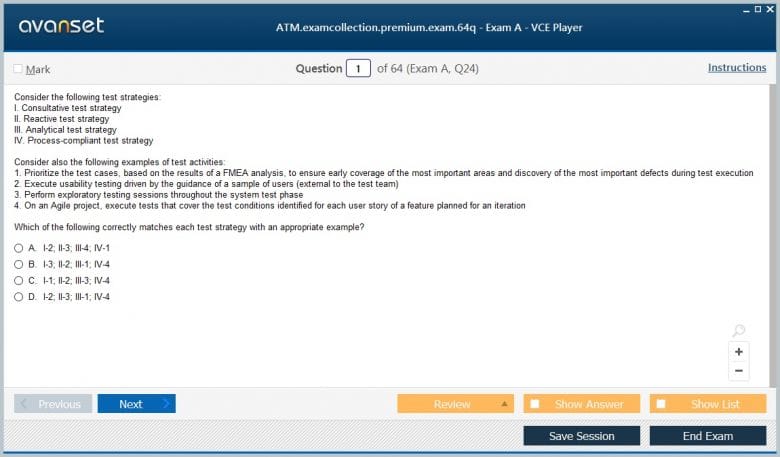 ISTQB ATM (Advanced Test Manager) exam dumps vce, practice test questions, study guide & video training course to study and pass quickly and easily. ISTQB ATM Advanced Test Manager exam dumps & practice test questions and answers. You need avanset vce exam simulator in order to study the ISTQB ATM certification exam dumps & ISTQB ATM practice test questions in vce format.