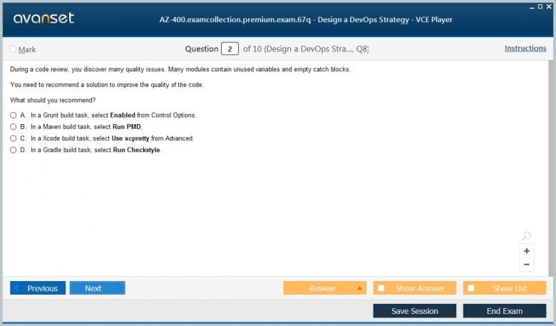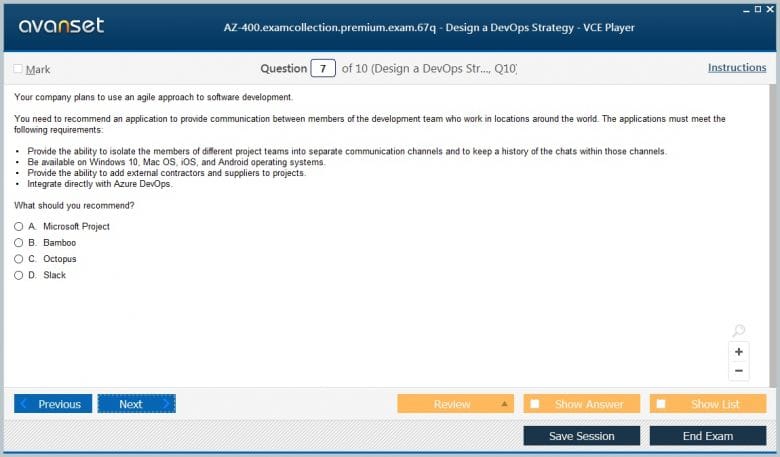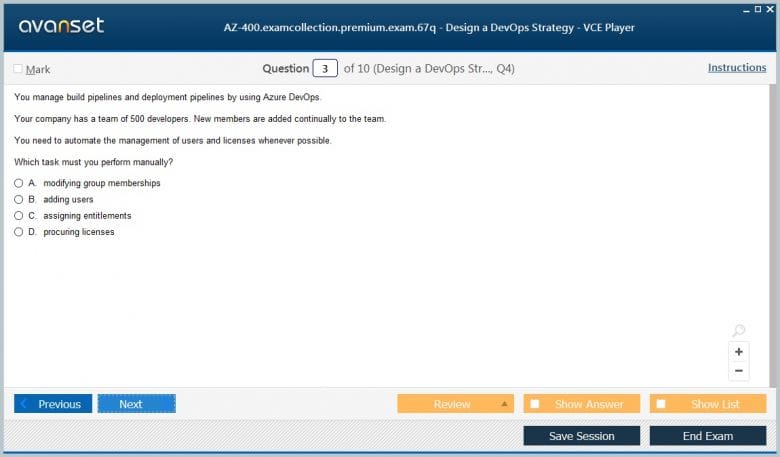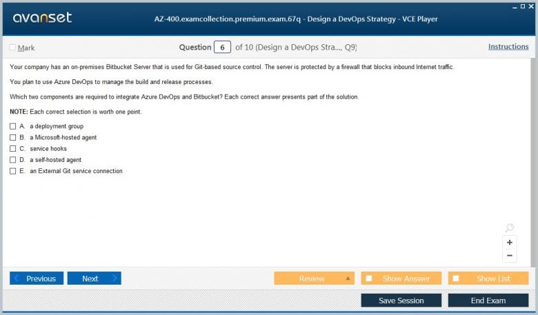 Microsoft AZ-400 (Designing and Implementing Microsoft DevOps Solutions) exam dumps vce, practice test questions, study guide & video training course to study and pass quickly and easily. Microsoft AZ-400 Designing and Implementing Microsoft DevOps Solutions exam dumps & practice test questions and answers. You need avanset vce exam simulator in order to study the Microsoft DevOps AZ-400 certification exam dumps & Microsoft DevOps AZ-400 practice test questions in vce format.