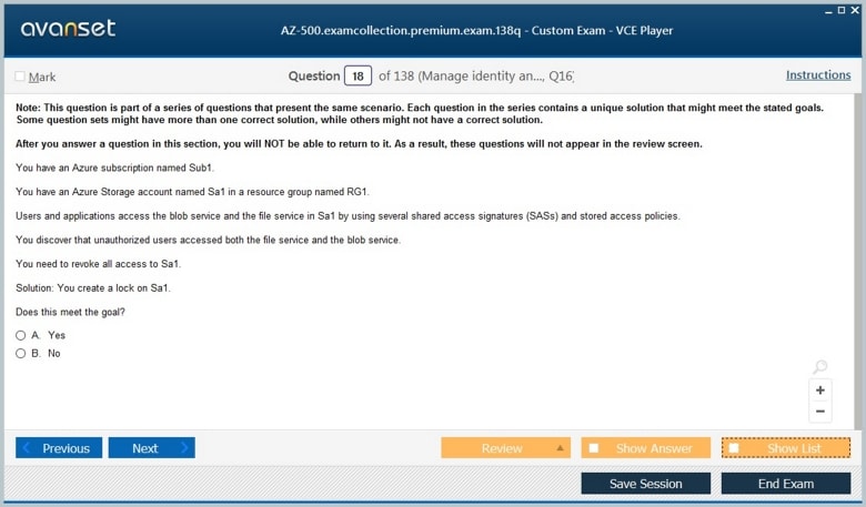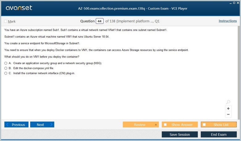 Microsoft AZ-500 (Microsoft Azure Security Technologies) exam dumps vce, practice test questions, study guide & video training course to study and pass quickly and easily. Microsoft AZ-500 Microsoft Azure Security Technologies exam dumps & practice test questions and answers. You need avanset vce exam simulator in order to study the Microsoft Azure Security AZ-500 certification exam dumps & Microsoft Azure Security AZ-500 practice test questions in vce format.