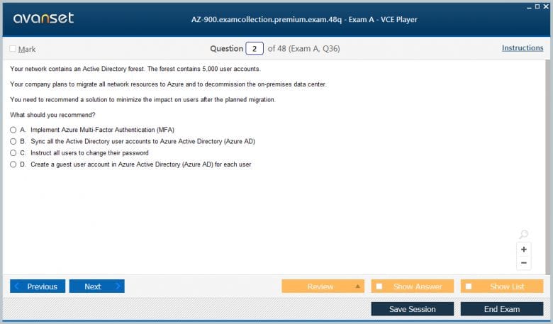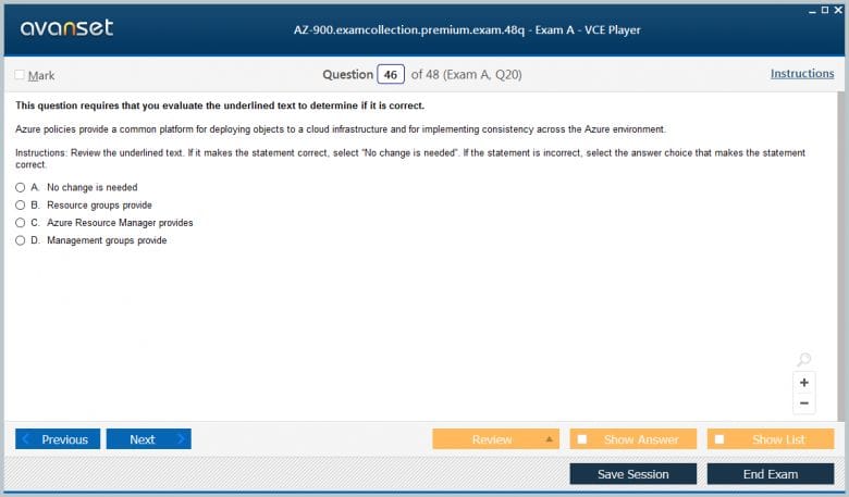 Microsoft AZ-900 (Microsoft Azure Fundamentals) exam dumps vce, practice test questions, study guide & video training course to study and pass quickly and easily. Microsoft AZ-900 Microsoft Azure Fundamentals exam dumps & practice test questions and answers. You need avanset vce exam simulator in order to study the Microsoft Azure AZ-900 certification exam dumps & Microsoft Azure AZ-900 practice test questions in vce format.