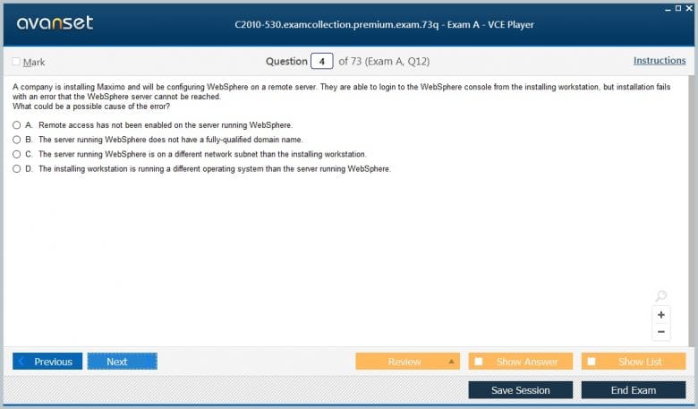 IBM C2010-530 (IBM Maximo Asset Management V7.6 Infrastructure and Implementation) exam dumps vce, practice test questions, study guide & video training course to study and pass quickly and easily. IBM C2010-530 IBM Maximo Asset Management V7.6 Infrastructure and Implementation exam dumps & practice test questions and answers. You need avanset vce exam simulator in order to study the IBM C2010-530 certification exam dumps & IBM C2010-530 practice test questions in vce format.