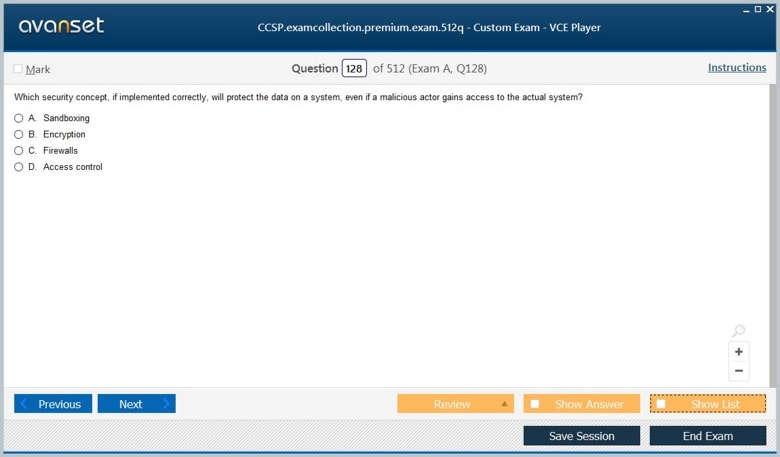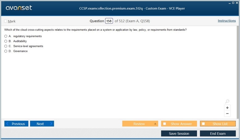 ISC CCSP (Certified Cloud Security Professional (CCSP)) exam dumps vce, practice test questions, study guide & video training course to study and pass quickly and easily. ISC CCSP Certified Cloud Security Professional (CCSP) exam dumps & practice test questions and answers. You need avanset vce exam simulator in order to study the ISC CCSP certification exam dumps & ISC CCSP practice test questions in vce format.