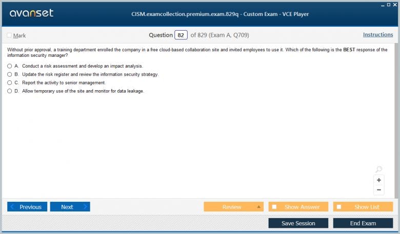 Since the exam emphasizes real-world decision-making, practicing with scenario-based questions is essential. Evaluate each scenario critically, consider potential risks, and choose actions aligned with governance principles and organizational objectives.