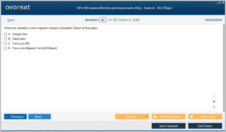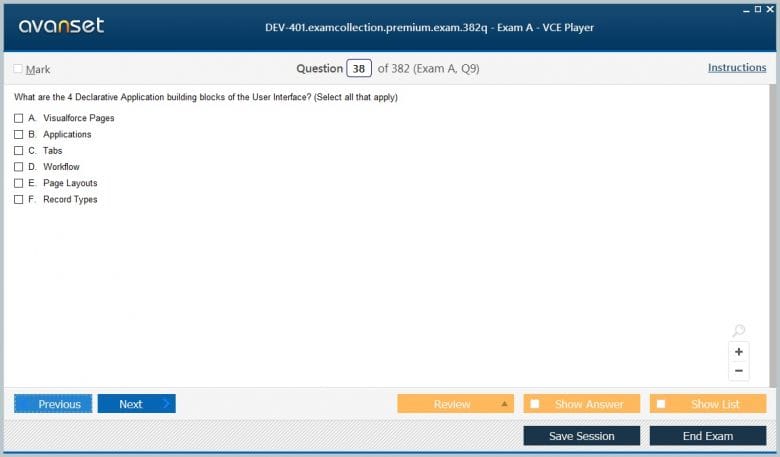 Go to testing centre with ease on our mind when you use Salesforce DEV-401 vce exam dumps, practice test questions and answers. Salesforce DEV-401 Building Applications with Force.com and Visualforce certification practice test questions and answers, study guide, exam dumps and video training course in vce format to help you study with ease. Prepare with confidence and study using Salesforce DEV-401 exam dumps & practice test questions and answers vce from ExamCollection.