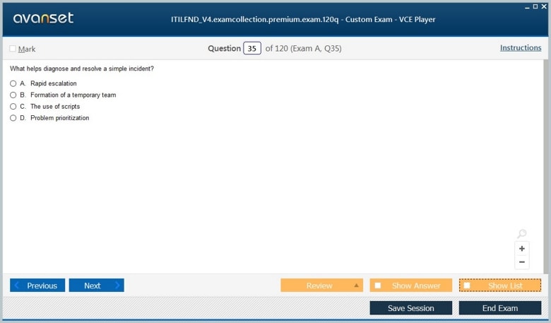 ITIL ITILFND V4 (ITIL 4 Foundation) exam dumps vce, practice test questions, study guide & video training course to study and pass quickly and easily. ITIL ITILFND V4 ITIL 4 Foundation exam dumps & practice test questions and answers. You need avanset vce exam simulator in order to study the ITIL ITILFND V4 certification exam dumps & ITIL ITILFND V4 practice test questions in vce format.