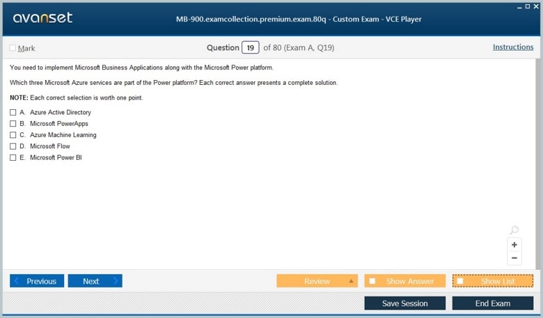 Microsoft MB-900 (Microsoft Dynamics 365 Fundamentals) exam dumps vce, practice test questions, study guide & video training course to study and pass quickly and easily. Microsoft MB-900 Microsoft Dynamics 365 Fundamentals exam dumps & practice test questions and answers. You need avanset vce exam simulator in order to study the Microsoft Dynamics 365 MB-900 certification exam dumps & Microsoft Dynamics 365 MB-900 practice test questions in vce format.